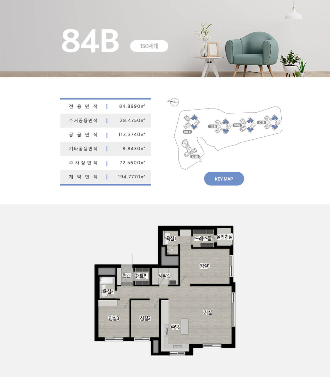 전 세대 남향 위주 배치와 선호도 높은 84㎡ 구성,